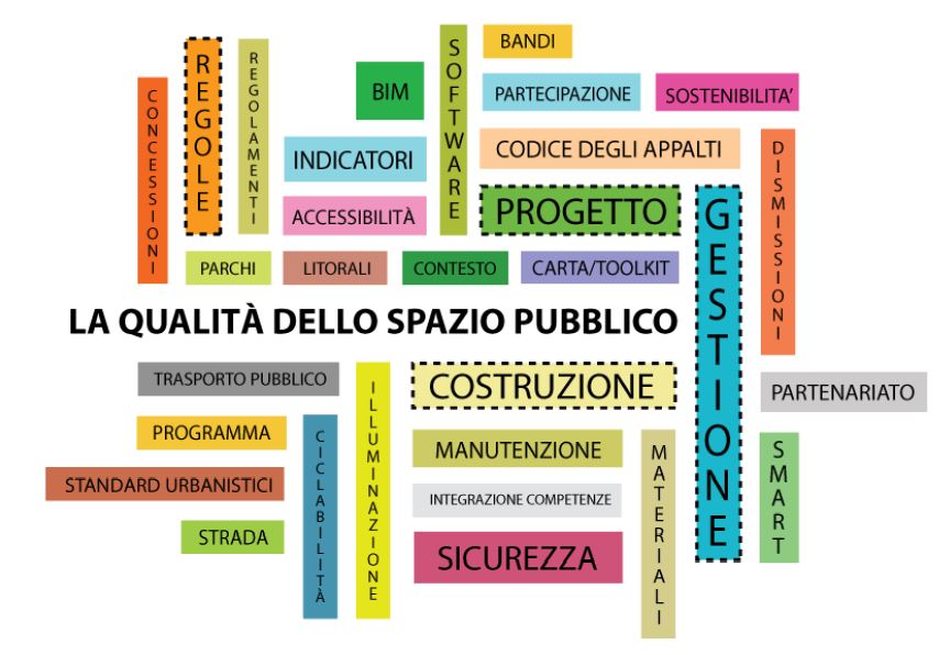 Focus generale dell’evento è la QUALITÀ DELLO SPAZIO PUBBLICO, che sarà approfondita declinando i diversi temi in 4 ambiti: Le Regole, Il Progetto, La Costruzione, La Gestione.